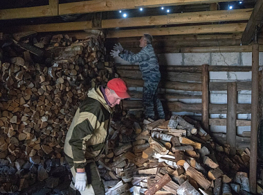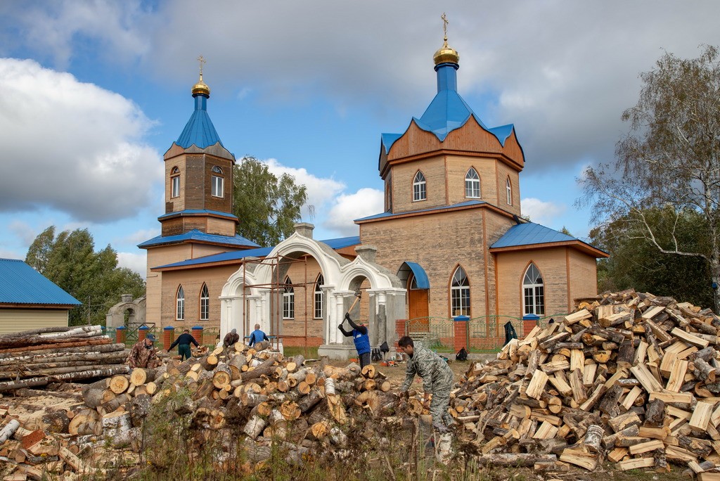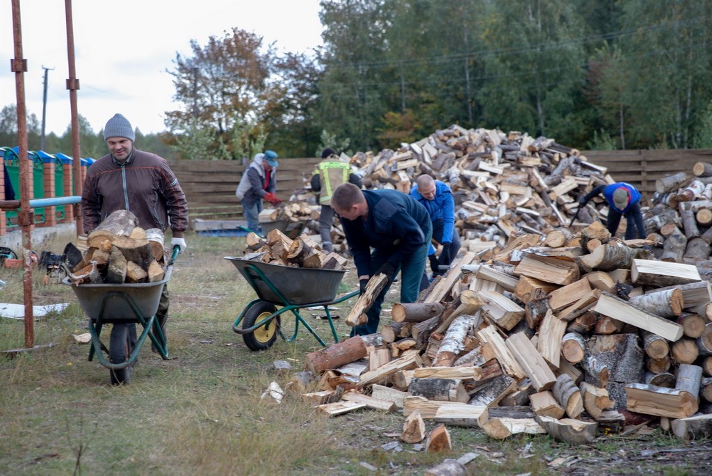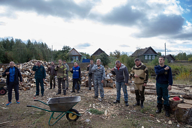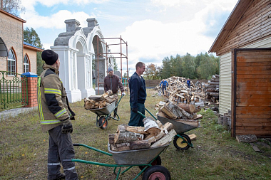 Необходимо было наколоть и уложить дрова, которых бы хватило для отопления на предстоящую зиму. Вместе с сотрудниками пожарной службы трудился помощник благочинного Выксунского округа по взаимодействию с силовыми структурами и руководитель «Православных витязей» Николай Чопенко.
