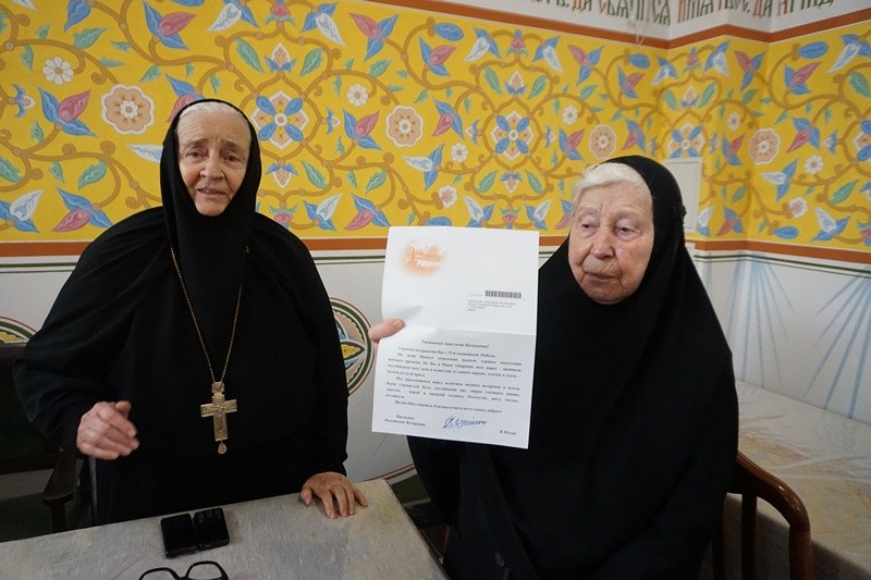 13 мая 2020 года, в праздник Преполовения Пятидесятницы, настоятельница монастыря игумения Неонилла (Кузьмина) за общей трапезой зачитала пришедшие в адрес монахини Серафимы поздравления с 75-летием Победы от Президента РФ В. В. Путина и губернатора Краснодарского края В. И. Кондратьева.