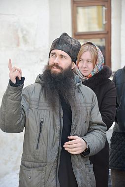 Экскурсию по Свято–Успенскому монастырю для педагогов провел насельник монастыря иеромонах Паисий (Новоженов). Он рассказал им о жизни Свято-Успенской обители и первом Патриархе Московском Иове, имя которого тесно связано с историей монастыря.