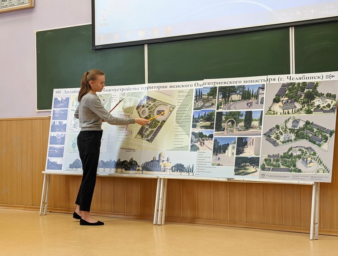 Студентка Южно-Уральского государственного университета Таисия Перминова защитила выпускную квалификационную работу на тему «Дизайн благоустройства территории женского Одигитриевского монастыря (г. Челябинск)». На защите присутствовала настоятельница Одигитриевского женского монастыря в городе Челябинске игумения Евсевия (Лобанова).