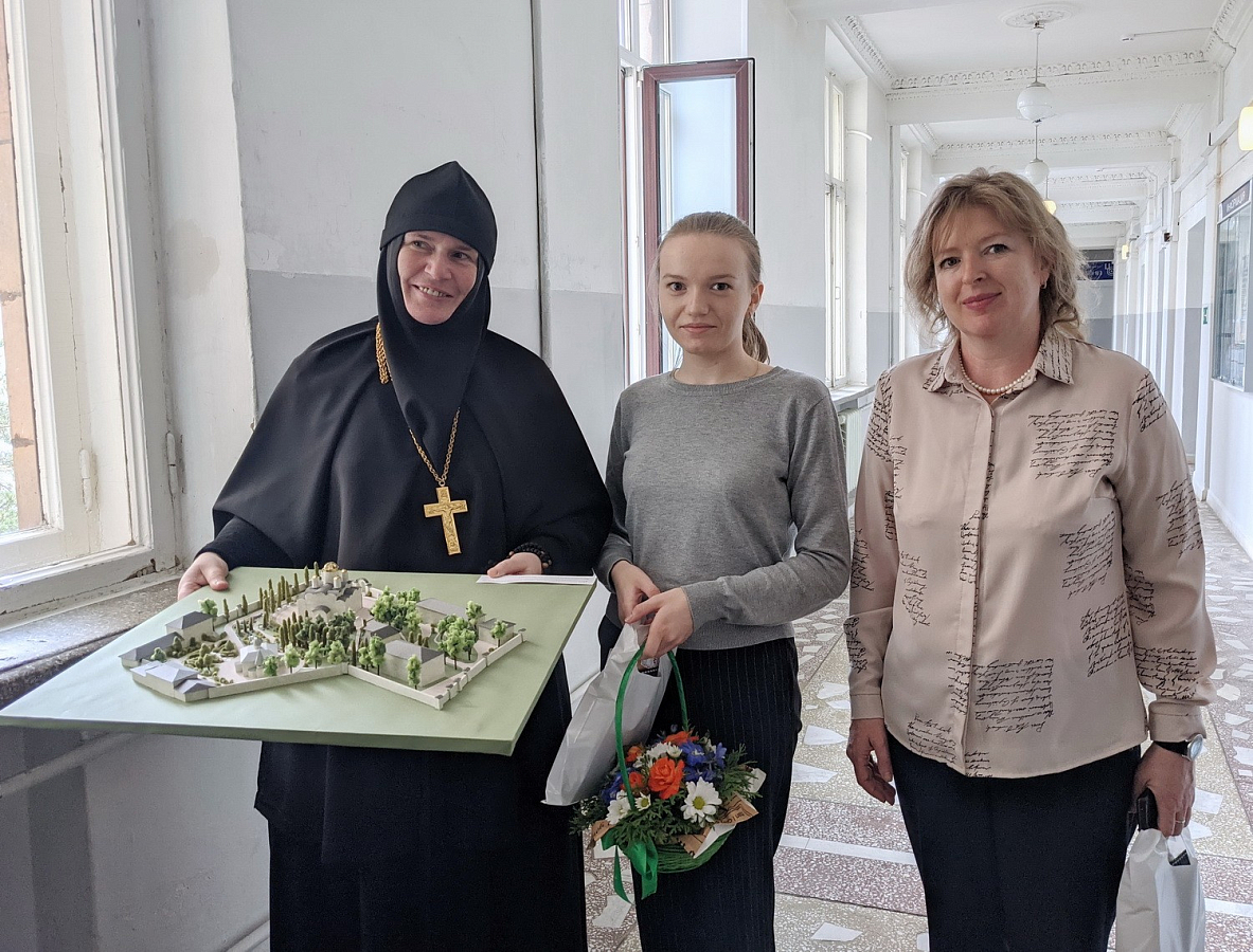 Матушка игумения выступила как заказчик проекта и дала работе свою рецензию. Государственная экзаменационная комиссия поставила девушке отличную оценку.
