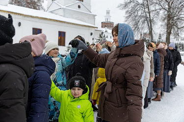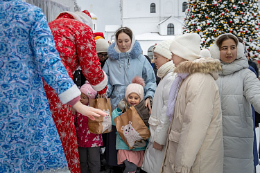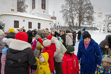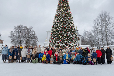 Студенты привезли с собой больше тонны фруктов, которые оформили в красиво упакованные подарки для детей и сестер монастыря. Однако их помощь не ограничилась подарками. Участники корпуса активно включились в жизнь обители: они наводили порядок в складских помещениях, убирали снег, помогали на кухне и в гостинице для паломников, выполняя различные послушания.
