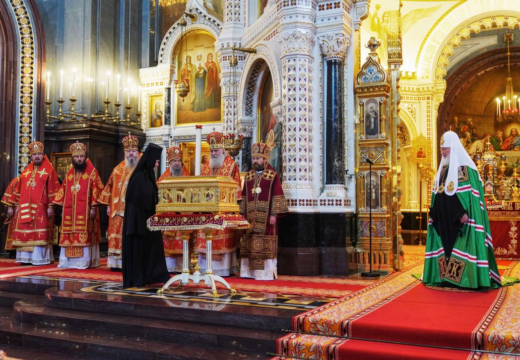 22 мая 2022 года, в Неделю 5-ю по Пасхе, о самаряныне, день памяти перенесения мощей святителя и чудотворца Николая из Мир Ликийских в Бар (1087), Святейший Патриарх Московский и всея Руси Кирилл совершил Божественную литургию в кафедральном соборном Храме Христа Спасителя г. Москвы.