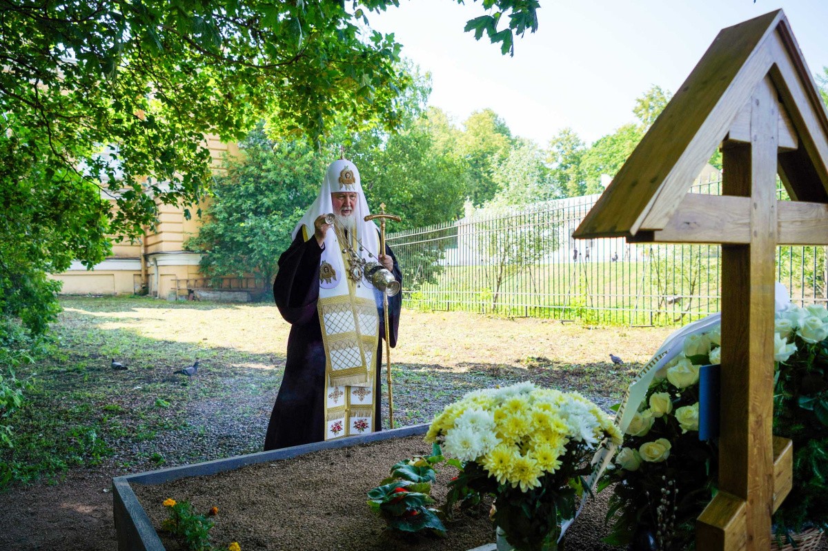 Затем на Никольском кладбище Александро-Невской лавры Святейший Владыка совершил литию на могиле своего духовного наставника приснопамятного митрополита Никодима (Ротова).
