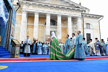21 июля 2019 года, в Неделю 5-ю по Пятидесятнице, праздник явления иконы Пресвятой Богородицы во граде Казани, Святейший Патриарх Московский и всея Руси Кирилл совершил Первосвятительский визит в город Торжок Тверской области.