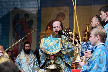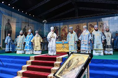 На богослужение был принесен чтимый чудотворный список Казанской иконы Божией Матери из Нило-Столобенской пустыни. Икона был установлена на аналое напротив сени с престолом для поклонения священнослужителей и верующих.