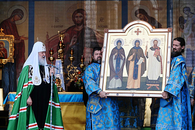 В дар обители Святейший Патриарх Кирилл передал икону трех святых: преподобномученика Макария Каменецкого, преподобномученика Афанасия Брестского и святителя Никифора Экзарха. «Их молитвами да хранит Господь сию святую обитель и славный город Торжок», – сказал Предстоятель.
