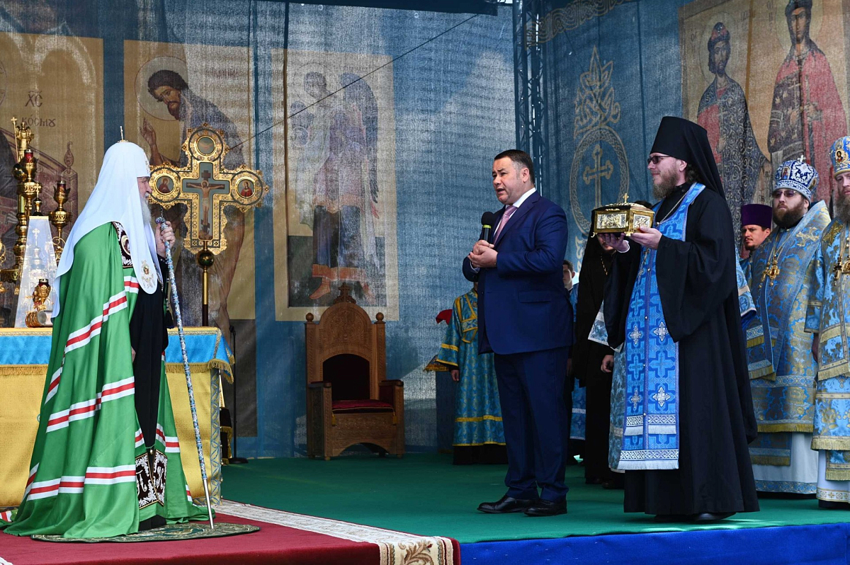 Затем выступил губернатор Тверской области И.М. Руденя. Глава региона передал Его Святейшеству ковчег с частицей мощей преподобного Аркадия Новоторжского.