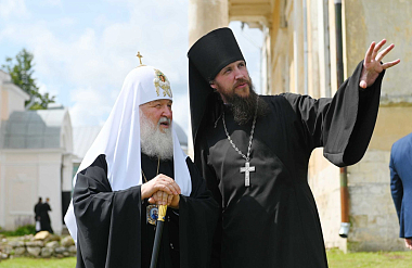 Затем Святейший Патриарх Московский и всея Руси Кирилл в сопровождении митрополита Тверского Саввы и настоятеля монастыря игумена Арсения осмотрел территорию и архитектурный комплекс Новоторжского Борисоглебского мужского монастыря: