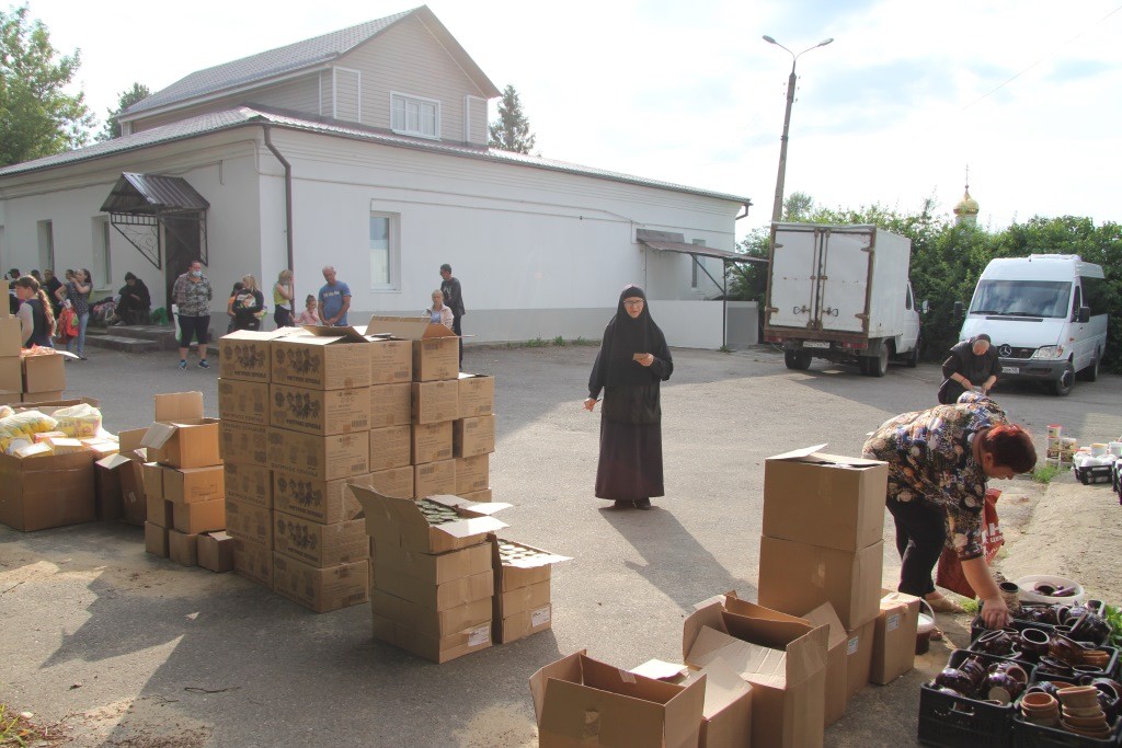 26 июля 2020 года Свято-Никольский Черноостровский женский монастырь провел очередную продуктово-вещевую раздачу для многодетных и малообеспеченных семей Малоярославецкого района.