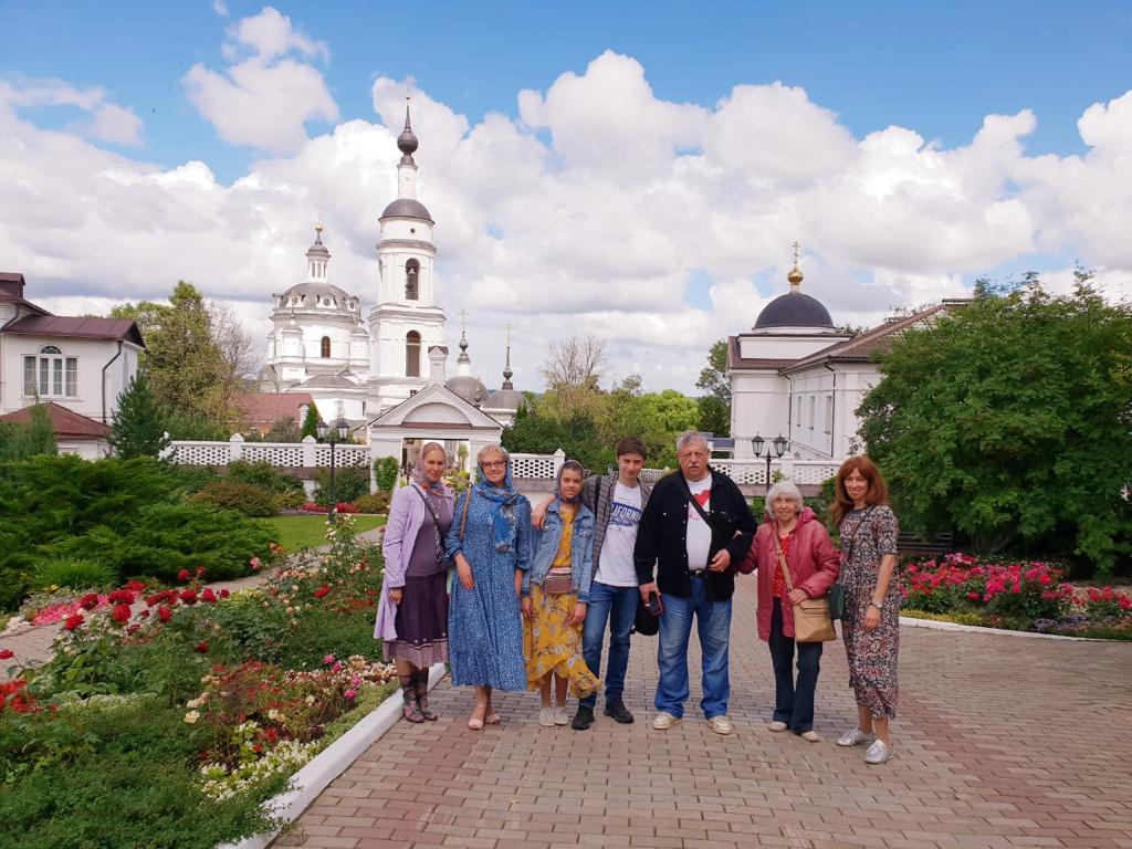 Михаил Борисович Борисов посетил монастырь вместе с родными: старшей сестрой Ниной, дочерью Марией и двумя ее детьми, Михаилом и Анной. Елену Вилорьевну Гришкову также сопровождала ее знакомая по ансамблю «Березка», а ныне педагог-хореограф ансамбля «Отрада» Елена Валерьевна Балог. Посетить обитель Елене Гришковой рекомендовала Мира Михайловна Кольцова, так как хореографический ансамбль «Отрада» находится под патронажем Государственного академического хореографического ансамбля «Березка» и Мира Михайловна как художественный руководитель «Березки» внимательно следит за творческой судьбой «Отрады» и заботится о ее творческом развитии. Поэтому, помимо экскурсии по храмам и территории самого монастыря, гости попросили показать им пансион «Отрада», Духовно-просветительский центр «София», Центр православных медиа, чтобы узнать, в каких условиях живут и развиваются участницы хореографического ансамбля «Отрада».