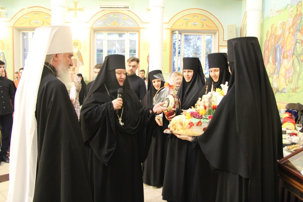 По завершении праздничной программы ее участникам была предложена трапеза в кафе-трапезной Духовно-просветительского центра «София», после которой большинство гостей отправилось на архиерейское всенощное бдение в Никольском соборе Свято-Никольского Черноостровского женского монастыря.