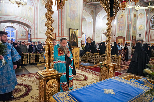Управляющему Нижегородской епархией сослужили благочинный Дивеевского округа, старший священник обители иерей Владимир Каргин, директор и духовник епархиального Центра подготовки церковных специалистов «Покров» имени митрополита Николая (Кутепова) протоиерей Алексий Парфенов и другие клирики епархии.