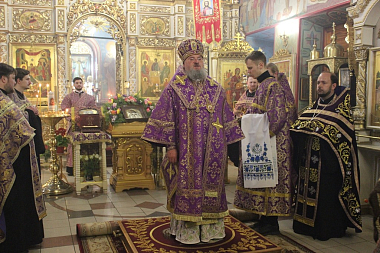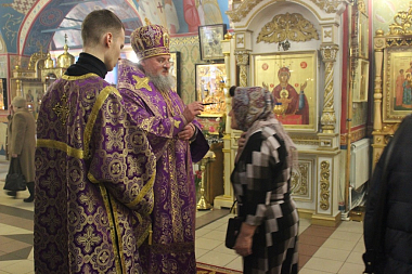 По окончании молебна епископ Никита обратился к собравшимся с архипастырским словом и совершил помазание верующих освященным елеем.