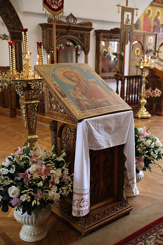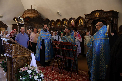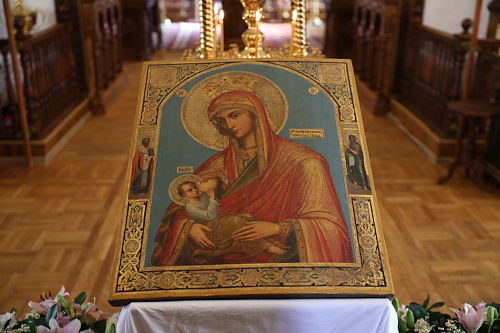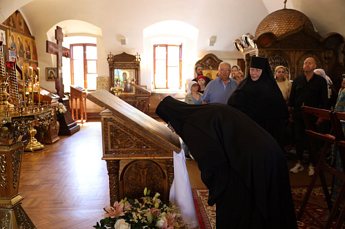 Под торжественный колокольный звон икону встретили священники, сестры, воспитанницы и прихожане монастыря во главе с настоятельницей игуменией Еротиидой (Гажу). В Успенском храме было совершен параклис – пение канона с акафистом.