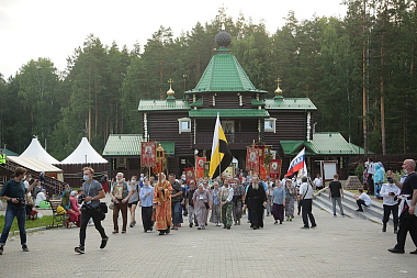 После Божественной литургии верующие начали молитвенное шествие по маршруту, которым в 1918 году провезли убиенных членов императорской семьи: через нынешние центр города, ВИЗ, Таганский ряд, Сортировку, поселок Шувакиш.