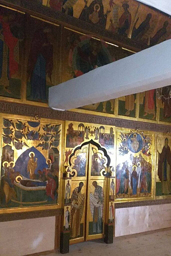 Возвращен на место иконостас, многие из икон которого выполены иконописцем Архимандритом Зиноном.