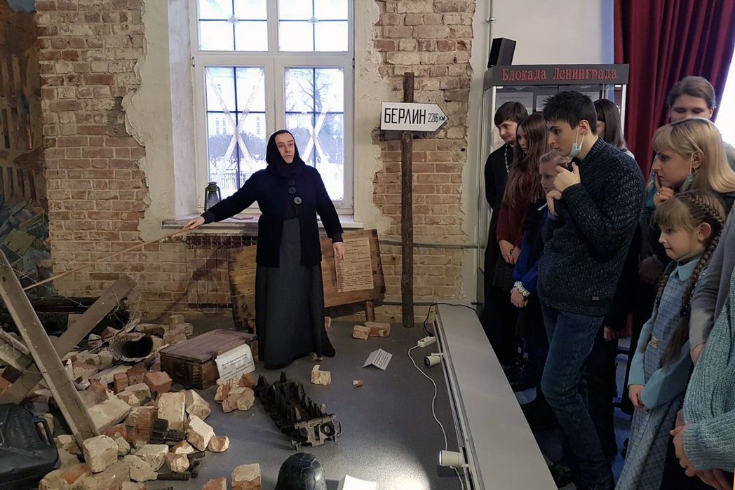 Затем путешественники посетили Дивеевскую монастырскую православную школу. Гостей встретила директор учебного заведения инокиня Наталия (Лялюшко). Она пригласила всех на экскурсию в школьный музей мужества, где провела исторический урок, посвященный Сталинградской битве.