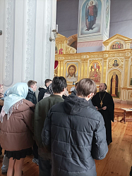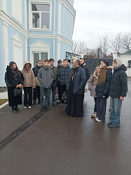 12 ноября помощник благочинного округа Арзамасского района по образованию и катехизации протоиерей Лев Бушуев провел экскурсию в Спасо-Преображенском мужском монастыре города Арзамаса для учащихся девятых классов школы «Сельхозтехника». Мероприятие было организовано отделом образования благочиния Арзамасского района совместно со школой.