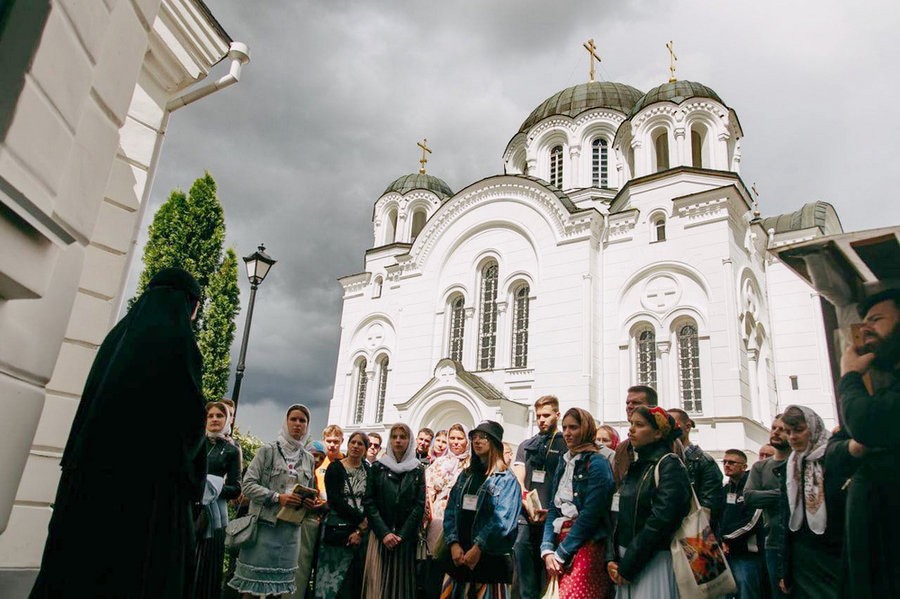 В первый день слета участники форума посетили Спасо-Евфросиниевский ставропигиальный женский монастырь в городе Полоцке и встретились с настоятельницей обители игуменией Евдокией (Левшук).