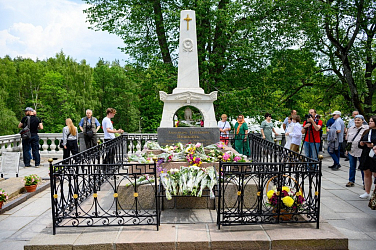 Состоялось возложение цветов к могиле Александра Сергеевича Пушкина за алтарем Успенского собора Святогорского монастыря. В церемонии приняли участие митрополит Феогност, митрополит Арсений, председатель Патриаршего совета по культуре митрополит Симферопольский и Крымский Тихон, епископ Сергий, архиепископ Матфей, губернатор Псковской области Михаил Ведерников, врио главы Республики Алтай Андрей Турчак, представители областной и районных администраций, Пушкиногорского музея-заповедника, общественных объединений и многочисленные гости праздника.