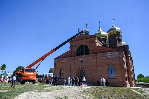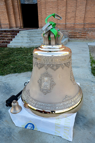 После освящения колокола все желающие смогли позвонить в него. Затем благовестник с помощью автокрана был поднят на звонницу. Всего же здесь будет установлено 12 колоколов.