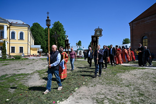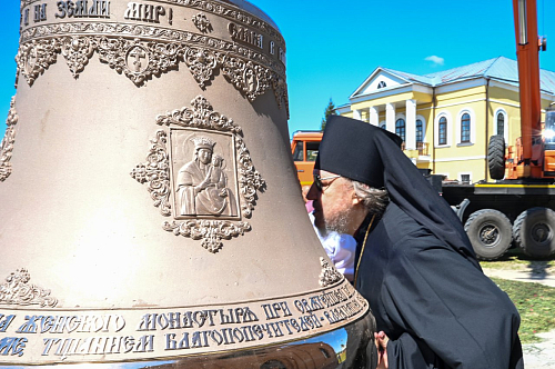 По окончании Литургии митрополит Александр возглавил крестный ход вокруг Никольского собора. Затем владыка совершил чин освящения главного колокола – благовестника, изготовленного на колокольном заводе Андрея Дьячкова в городе Тутаеве Ярославской области. Вес колокола составляет 800 килограммов. Он украшен рельефными изображениями иконы «Нерукотворный образ Господа нашего Иисуса Христа», иконы Божией Матери «Споручница грешных», святителя Николая Чудотворца и царя-страстотерпца Николая II. Также на колоколе выбиты имена правящего архиерея, настоятельницы монастыря и благодетелей.