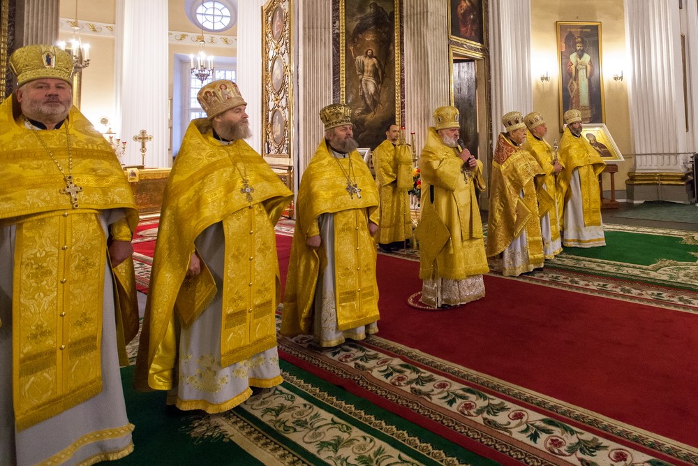 Его Преосвященству сослужили: секретарь Санкт-Петербургской епархии протоиерей Сергий Куксевич, настоятель храма Богоявления на Гутуевском острове протоиерей Павел Феер, ключарь Исаакиевского собора протоиерей Алексий Исаев, братия обители в священном сане и гости Лавры.