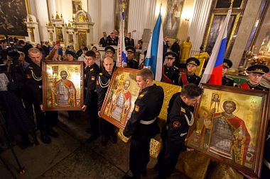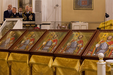 «Только что мы освятили иконы благоверного князя с частицами его мощей, – продолжил наместник Александро-Невской лавры. – Они были специально написаны для подразделений морской пехоты. Военно-морской флот – это грозная защита нашего Отечества, а морские пехотинцы – бриллиант флота, они всегда первые. Пусть Александр Невский будет для них примером как в жизни боевой, так и в жизни мирной. Пусть он вдохновляет всех молодых людей, которые выбирают своей жизненной стезей службу на рубежах нашей Родины. И пусть морские пехотинцы свято чтят святыни, которые мы сегодня им передаем».