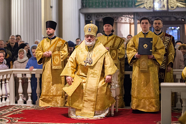 Накануне всенощное Бдение в Свято-Троицком соборе обители возглавил наместник монастыря епископ Кронштадтский Назарий.