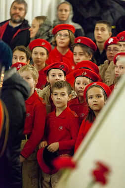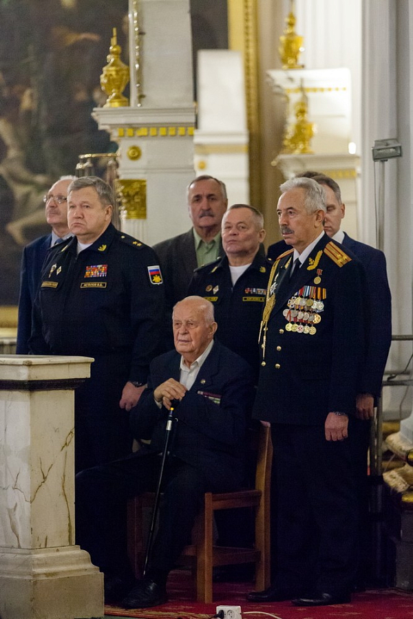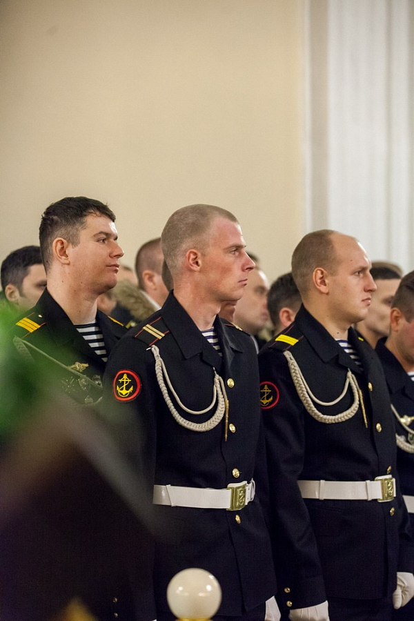 За Литургией молились заместитель Главнокомандующего ВМФ РФ генерал-лейтенант Виктор Астапов, другие почетные гости, военнослужащие морской пехоты РФ, курсанты, воспитанники военно-патриотических клубов.