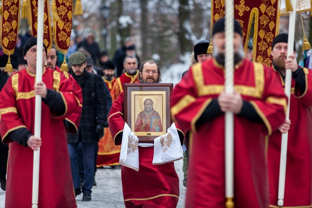 По окончании богослужения верующие прошли крестным ходом к могиле священномученика Петра на Тихвинском кладбище лавры, где был отслужен молебен святому.