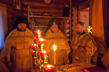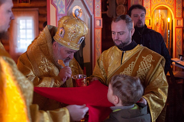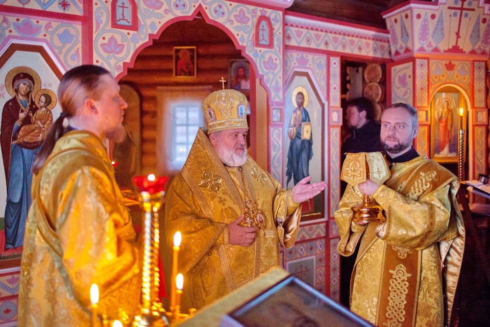 Епископ Назарий в этот день возглавил Божественную литургию в Никольском скиту обители.