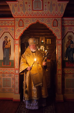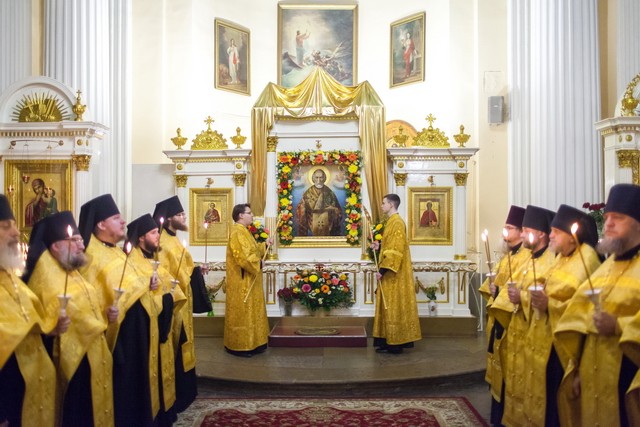 Накануне всенощное бдение одному из самых почитаемых святых в православном мире в Свято-Троицком соборе монастыря совершил наместник обители епископ Кронштадтский Назарий в сослужении братии монастыря в священном сане.