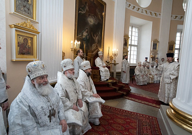 Его Высокопреосвященству сослужили: митрополит Новгородский и Старорусский Лев, ректор Московской духовной академии архиепископ Верейский Амвросий, епископ Выборгский и Приозерский Игнатий, наместник Александро-Невской лавры епископ Кронштадтский Назарий, епископ Каскеленский Геннадий, епископ Тихвинский и Лодейнопольский Мстислав, епископ Гатчинский и Лужский Митрофан, епископ Армавирский и Лабинский Игнатий, ректор Санкт-Петербургской духовной академии епископ Петергофский Серафим, насельники лавры в священном сане и духовенство Санкт-Петербургской митрополии.