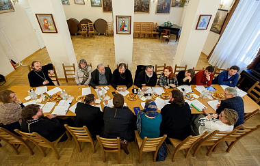 Участие в рабочей встрече приняли настоятель храма преподобного Серафима Вырицкого при Большом Гостином Дворе иерей Артемий Наумов, настоятель храма Казанской иконы Божией Матери в Вырице протоиерей Георгий Преображенский, председатель совета Санкт-Петербургской епархии по культуре иерей Илия Макаров, руководитель сектора коммуникаций епархиального информационного отдела и пресс-центра Александро-Невской лавры Наталья Родоманова, начальник городского отдела по связям с религиозными объединениями Владимир Иванов, председатель Общественного совета по развитию малого предпринимательства при губернаторе Санкт-Петербурга Сергей Федоров, автор жития преподобного Серафима Вырицкого писатель Валерий Филимонов, представители Союза православных предпринимателей.
