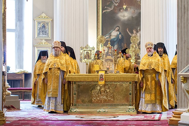 5 июля 2020 года, в Неделю 4-ю по Пятидесятнице, день памяти священномученика Евсевия, епископа Самосатского, в Свято-Троицкой Александро-Невской лавре Санкт-Петербурга состоялись воскресные богослужения.