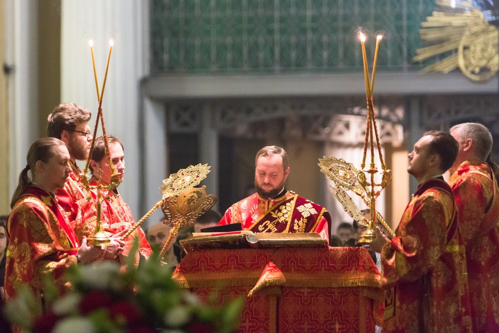 Во время Литургии пасхальное Евангелие читалось на пятнадцати языках в знак того, что проповедь Христова обращена ко всем народам.