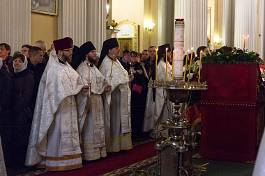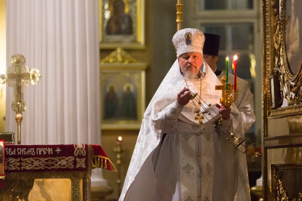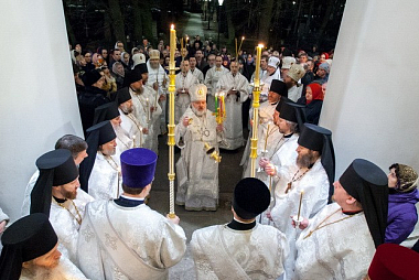 За пасхальной заутреней Владыка прочитал Огласительное слово святителя Иоанна Златоуста на Святую Пасху, которое уже более полутора тысяч лет звучит в храмах.
