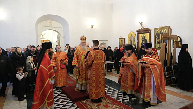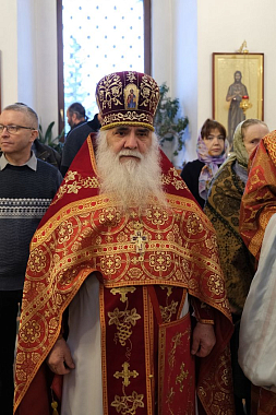 Его Высокопреосвященству сослужили настоятель Александровского монастыря архимандрит Авель (Ургалкин), настоятель Васильевского монастыря игумен Рафаил (Нечетаев), благочинный города Суздаля и настоятель Спасо-Евфимиева монастыря иеромонах Арсений (Смирнов), клирики Успенского кафедрального собора г. Владимира.