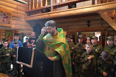 После богослужения на площадке у бревенчатого – как будто из русской старины – храма прямо под открытым небом был подготовлен «конференц-зал» из скамеек и пеньков для того, чтобы провести военно-исторический лекторий с презентацией детских исследовательских проектов и викториной. Лекторий проводили руководитель военно-патриотического клуба в честь святителя Николая Наталья Кузовкова и Алексей Лабзин – историк-реконструктор. Презентацию своего исследовательского проекта представили юные казачки-кадеты из Малоярославца – воспитанницы детского православного пансиона «Отрада». После лектория и презентации прошла викторина, посвященная Подольским курсантам и их подвигу на Ильинских рубежах. После викторины был показан короткометражный документальный фильм «Ильинские рубежи», подготовленный для интерактивного музея «Малоярославец – город двух великих побед».