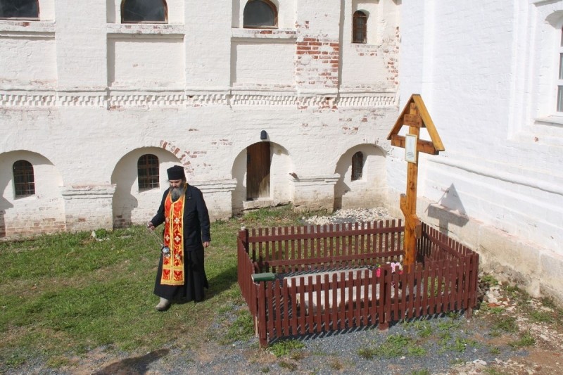 «Слева от паперти Троицкого собора расположилась небольшая скромная могилка. На деревянном кресте, обнесенном оградой, висит табличка, где указано, что здесь похоронен блаженный Василий (Вавила) Босой», – сообщается на странице обители в соцсети.