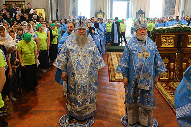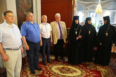 В храме вместе с многочисленными прихожанами молились настоятельница Свято-Троицкого Серафимо-Дивеевского монастыря игумения Сергия (Конкова), настоятельница Свято-Троицкого Макарьевского Желтоводского монастыря игумения Михаила (Орлова), настоятельница Нижегородского Крестовоздвиженского монастыря игумения Филарета (Гажу), настоятельница Выксунского Иверского монастыря игумения Антония (Миронова), настоятельница Абабковского Николаевского Георгиевского монастыря игумения Никона (Желякова), настоятельница Дальне-Давыдовского монастыря игумения Руфина (Тарасенко), настоятельница Арзамасского Свято-Николаевского монастыря игумения Филарета (Шевченко), настоятельница архиерейского подворья возрождающегося Новодевичьего во имя Алексия, человека Божия, монастыря монахиня Феогноста (Гончарова), настоятельница Нижегородского архиерейского подворья храма в честь святых Кирилла и Мефодия инокиня Алипия (Андрейко), педагоги и учащиеся Арзамасской православной гимназии имени святых мучениц Веры, Надежды, Любови и матери их Софии.
