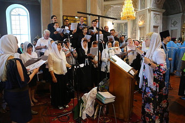 Церковные песнопения исполнил сводный хор под руководством регента Киры Молевой. В его состав вошли хоры нижегородского Александро-Невского кафедрального собора (регент – Кира Молева) и Воскресенского кафедрального собора Арзамаса (регент – Татьяна Кошелева).