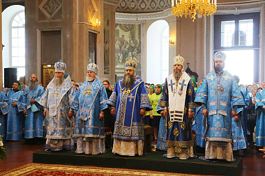 Его Высокопреосвященству сослужили викарий Нижегородской епархии епископ Балахнинский Илия, епископ Выксунский и Павловский Варнава, епископ Муромский и Вязниковский Нил, епископ Альметьевский и Бугульминский Мефодий, секретарь архиерейского совета Нижегородской митрополии протоиерей Сергий Матвеев, ключарь кафедрального собора и благочинный Арзамаса протоиерей Игорь Медведев, настоятель Оранского монастыря в честь Владимирской иконы Божией Матери архимандрит Нектарий (Марченко), настоятель Нижегородского Вознесенского Печерского монастыря архимандрит Тихон (Затёкин), настоятель Нижегородской Благовещенской обители архимандрит Александр (Лукин), наместник Свято-Успенского монастыря – Саровской пустыни игумен Никон (Ивашков), благочинные округов, руководители отделов и другие клирики Нижегородской епархии.