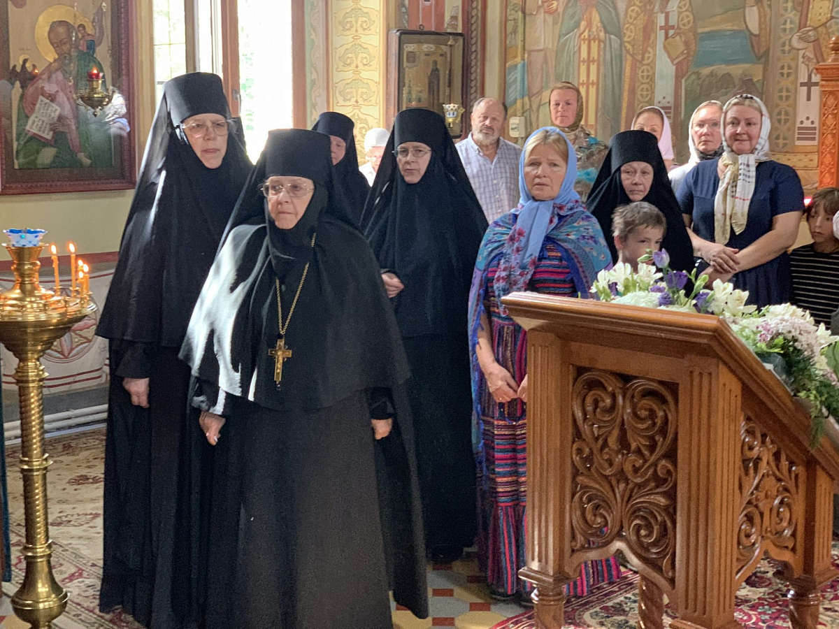 За богослужением молились настоятельница монастыря игумения Феофила (Лепешинская) с сестрами и многочисленные паломники.