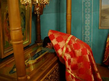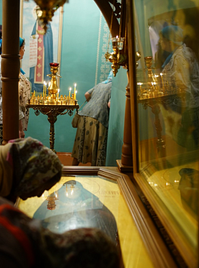 Прихожане, ветераны и паломники, пришедшие на богослужение, с великой радостью преклоняли колени, клали живые цветы и целовали раку со святыми мощами преподобного аввы Варсонофия.