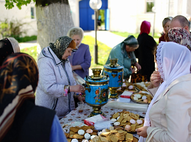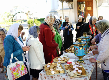 В завершение праздника участники богослужения были приглашены на чаепитие из самоваров с выпечкой и сладостями.