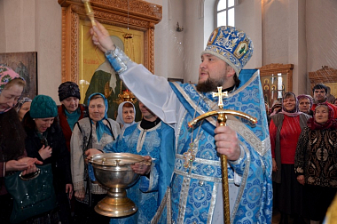 Затем наместник обители окропил всех молящихся святой водой и обратился к собравшимся с проповедью, в которой рассказал и о самой иконе Божией Матери «Млекопитательница», и о празднуемом событии, а также поблагодарил прихожан и паломников за общую молитву и поздравил от имени братии: