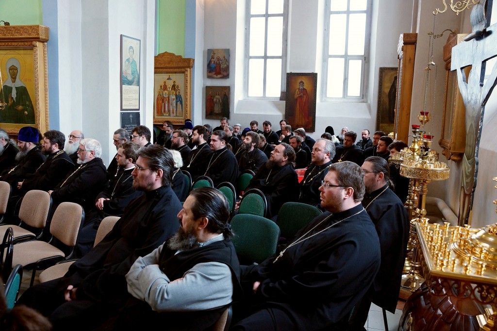 Собрание открыл митрополит Тульский и Ефремовский Алексий: «Нынешняя тема нашего размышления и обмена мнениями посвящена непосредственно жизни наших духовных пастырей Церкви – той аскезе, которая позволяет нам не только быть вестниками евангельской благодати, но и осуществителями ее в своей христианской личной жизни.